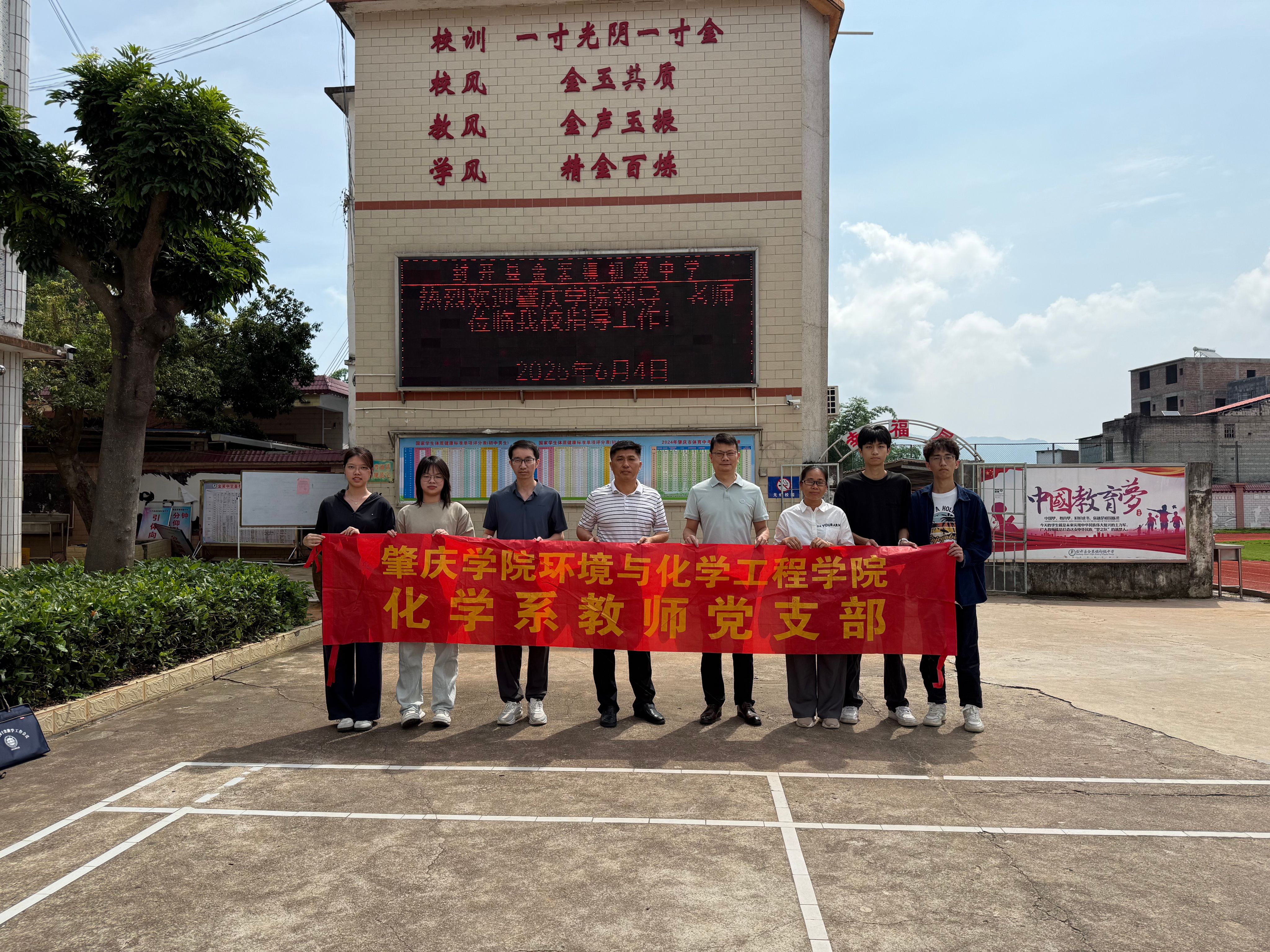 为深化党建引领业务发展,6月4日,taptap点点体育,taptap点点官网入口化学系党员教师谈金副教授、康健博士前往肇庆市封开县金装中学、长安中学和长安中心小学,走访探望春季顶岗实习学生。金装中学校长张胜荣、长安中学校长蔡兆生、长安中心小学校长林满忠等校领导出席活动。