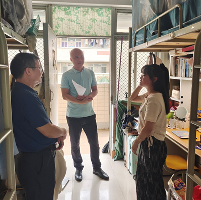4月23日,为贯彻落实学校学工部关于安全稳定工作的通知精神,学院党委书记刘远君、副书记杨原行带领毕业班辅导员到毕业生宿舍开展走访活动。