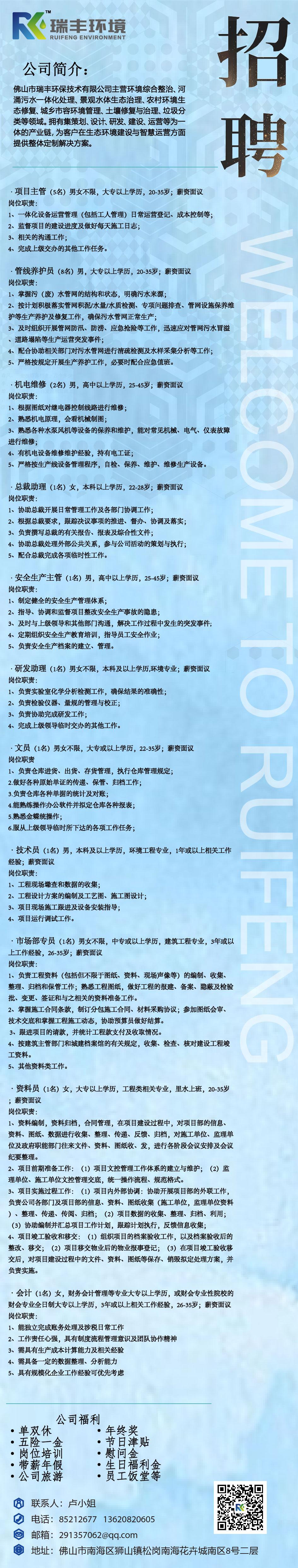 佛山市瑞丰环保技术有限公司招聘