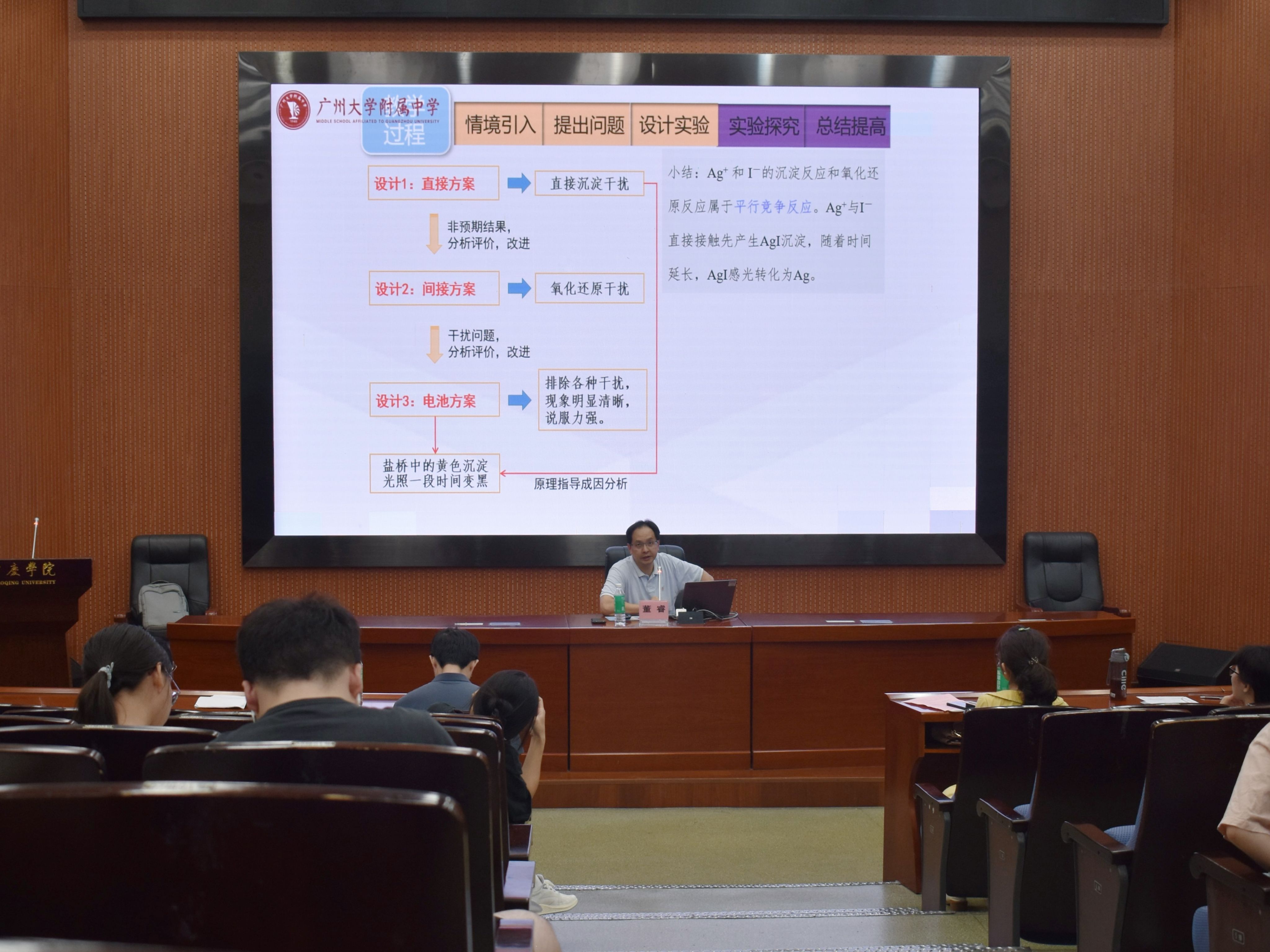 董睿老师在讲座上围绕课程教学首先讲解教学的“四个模式”,让学生对化学知识内容有更深刻的了解,继而,再分别对实验教学的五个过程进行了细致入微、丝丝入扣的讲解,让学生对往后的职业有了初步的了解。