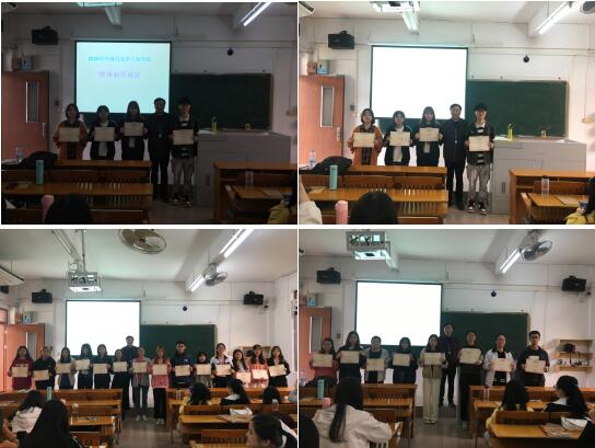 1. 摄像机+黑板或电子白板;2. 手机、相机+白纸;3. 屏幕录制(屏幕录制软件+PPT);4. 微课制作专家(手写录屏宝)的四种场景。还介绍了一些软件的使用方法。 同学们听课后受益匪浅,按照所学技能积极制作出微课参赛。学院评出了4个一等奖、8个二等奖、15个三等奖。总分第一的杨彩丽同学微课《分子与原子》(初中化学)被推选参加学校评奖。 2020.12.11上午刘平老师为获一、二、三等奖的同学颁了奖。