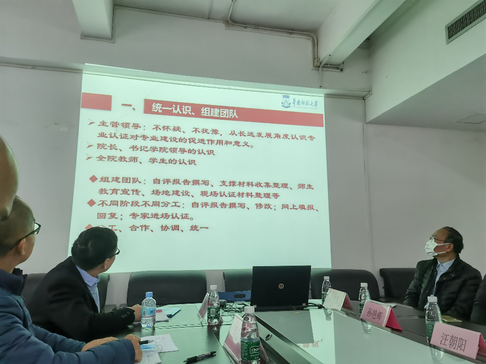 华南师范大学石光副院长、陈巧年副书记及华师化学专业认证相关老师百忙之中热情接待我们。交流会议上,石光副院长将华师化学师范认证的过程和经验做成PPT,为我们非常详细、毫无保留的做了经验介绍;回答了我们带去关于专家进校的很多问题,解除了困惑;会议后石院长带领我们参观了华师认证材料、认证展览室等。