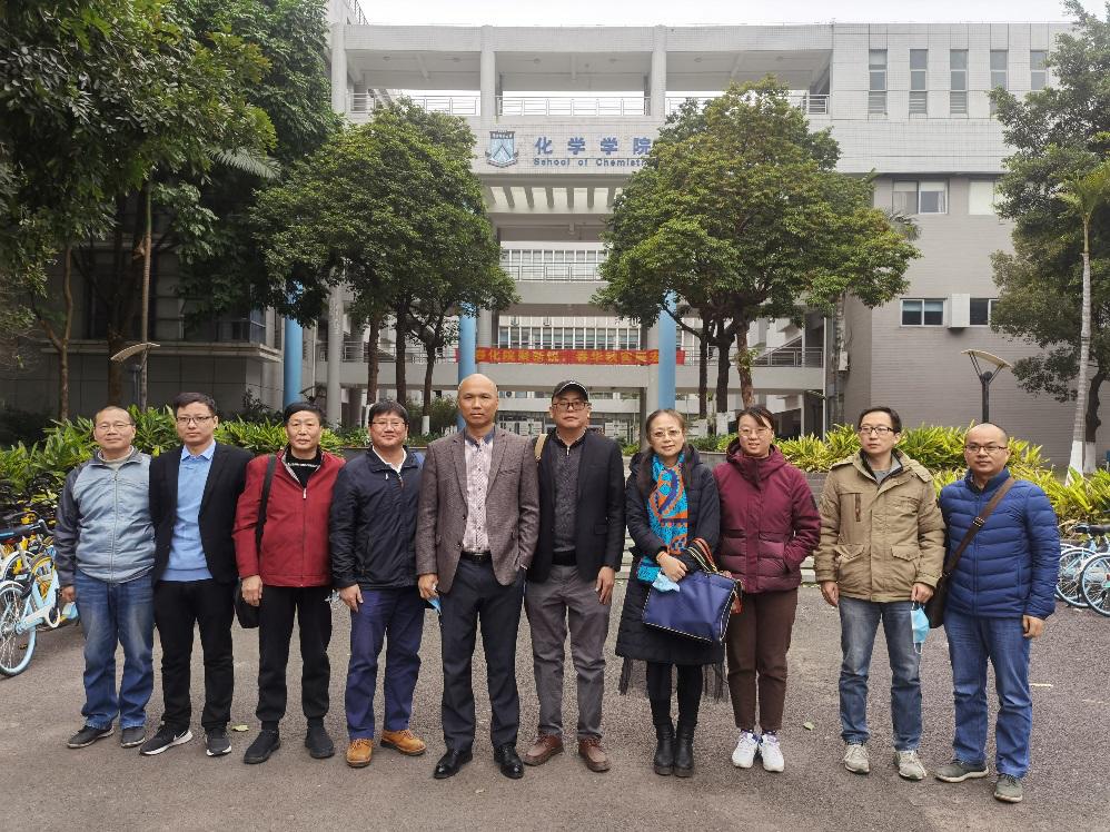 化学专业师范认证临近专家进校,2021.1.7日,由吴燕妮副院长带队,学院领导吴贤格副院长、杨原行副书记和化学专业相关老师一行10人到华南师范大学化学学院学习交流取经。