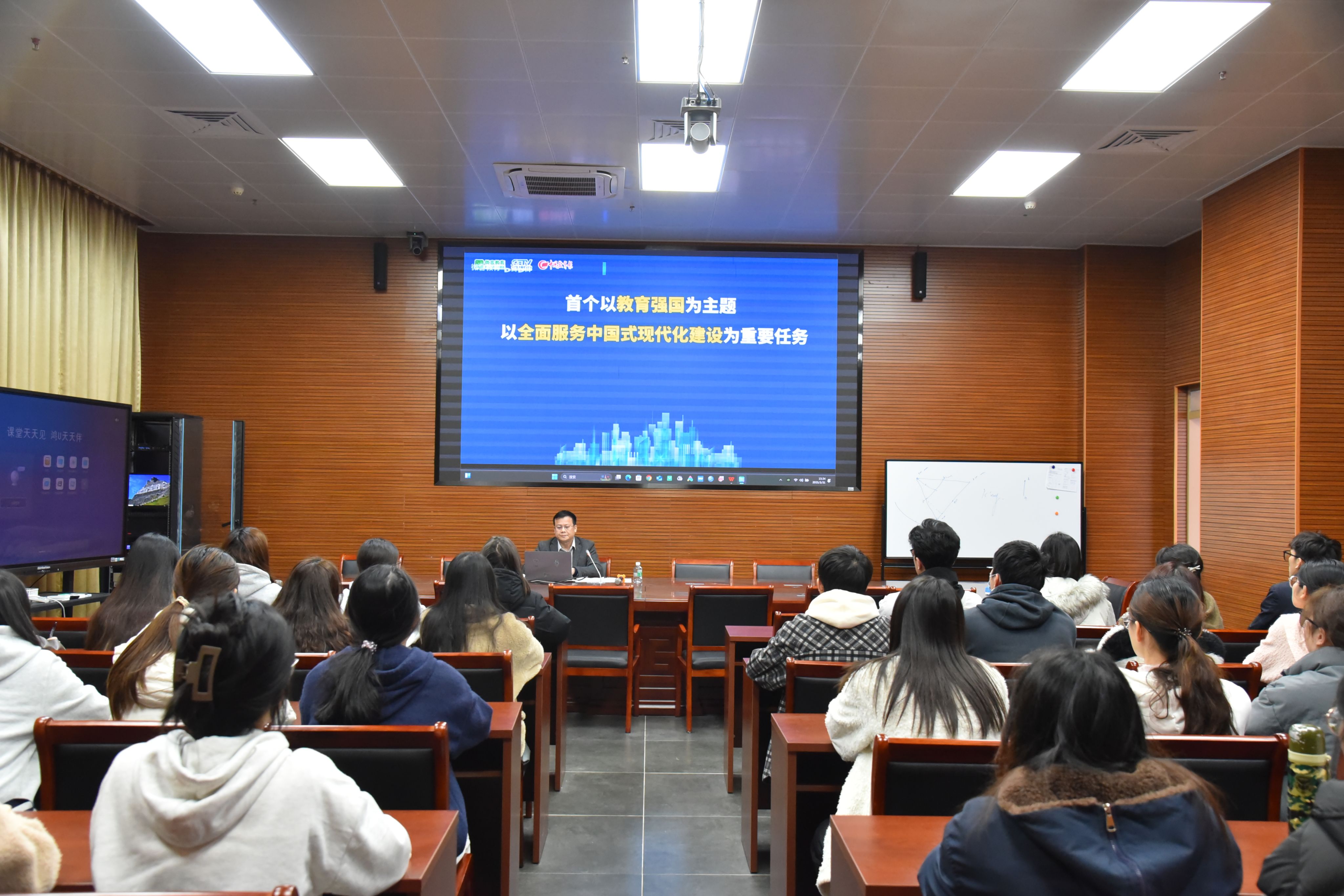 3月31日,学院党委书记刘远君以《从教育大国迈向教育强国:青年大学生何为?》为题,为学院学生党员、入党积极分子带来了一堂生动的思政课。刘远君从学校的发展历史讲起,回顾了学校教育层次从专科、本科、硕士研究生发展的辉煌历程,展望了学校“改大申博”的发展战略,这一切都是基于国家“教育强国”的宏伟蓝图而展开的。 刘远君书记指出,近年来,我国普通高等学校数量及高校毕业生人数逐年递增,教育体系规模庞大,教育现代化发展总体水平已跨入世界中上国家行列。然而,面对教育资源配置的不平衡和教育发展的不充分,我国离教育强国的目标还有很长的路要走。他强调,青年大学生作为国家的未来和希望,肩负着实现教育强国的重要使命,应树立远大理想、努力学习专业知识、积极参与社会实践、培养创新思维和实践能力、践行社会主义核心价值观、培养国际视野、关注教育改革与发展以及发挥榜样作用。并寄语在校大学生:要锚定2035年建成教育强国的阶段性目标,接过历史的接力棒,以新时代青年人的责任感和担当精神,书写教育强国建设的新篇章,为实现中华民族伟大复兴的中国梦贡献青春力量。