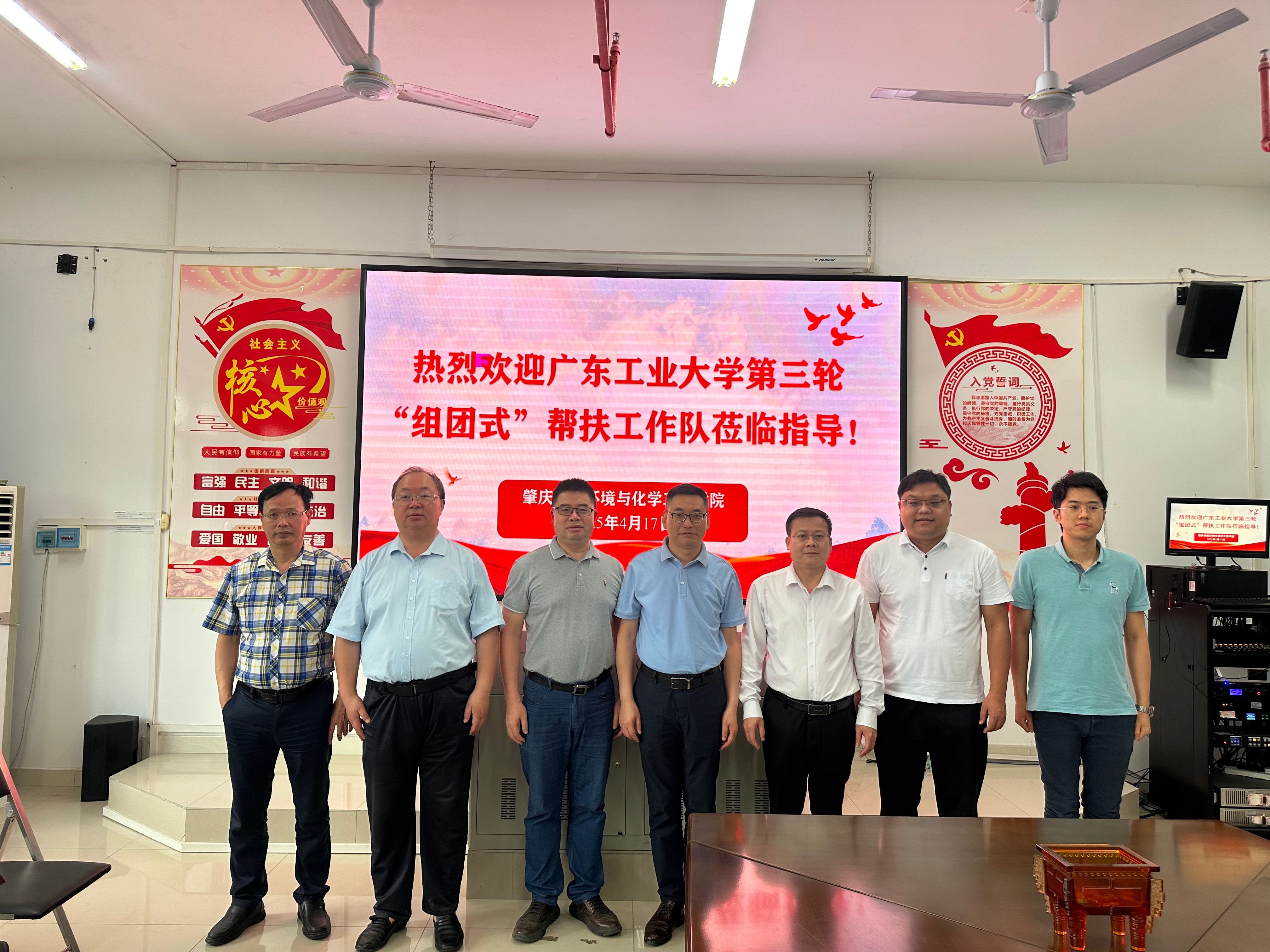 李湘院长首先代表学院对广东工业大学帮扶团队的到来表示热烈欢迎和诚挚感谢,并通过PPT的方式向帮扶工作队汇报了学院概况和重点工作,强调了在党建、教学、科研、学科建设、学生管理等方面取得的成绩及存在的挑战。希望广东工业大学在学院师资提升、研究生培养、人才引进等方面提供有力的支持。