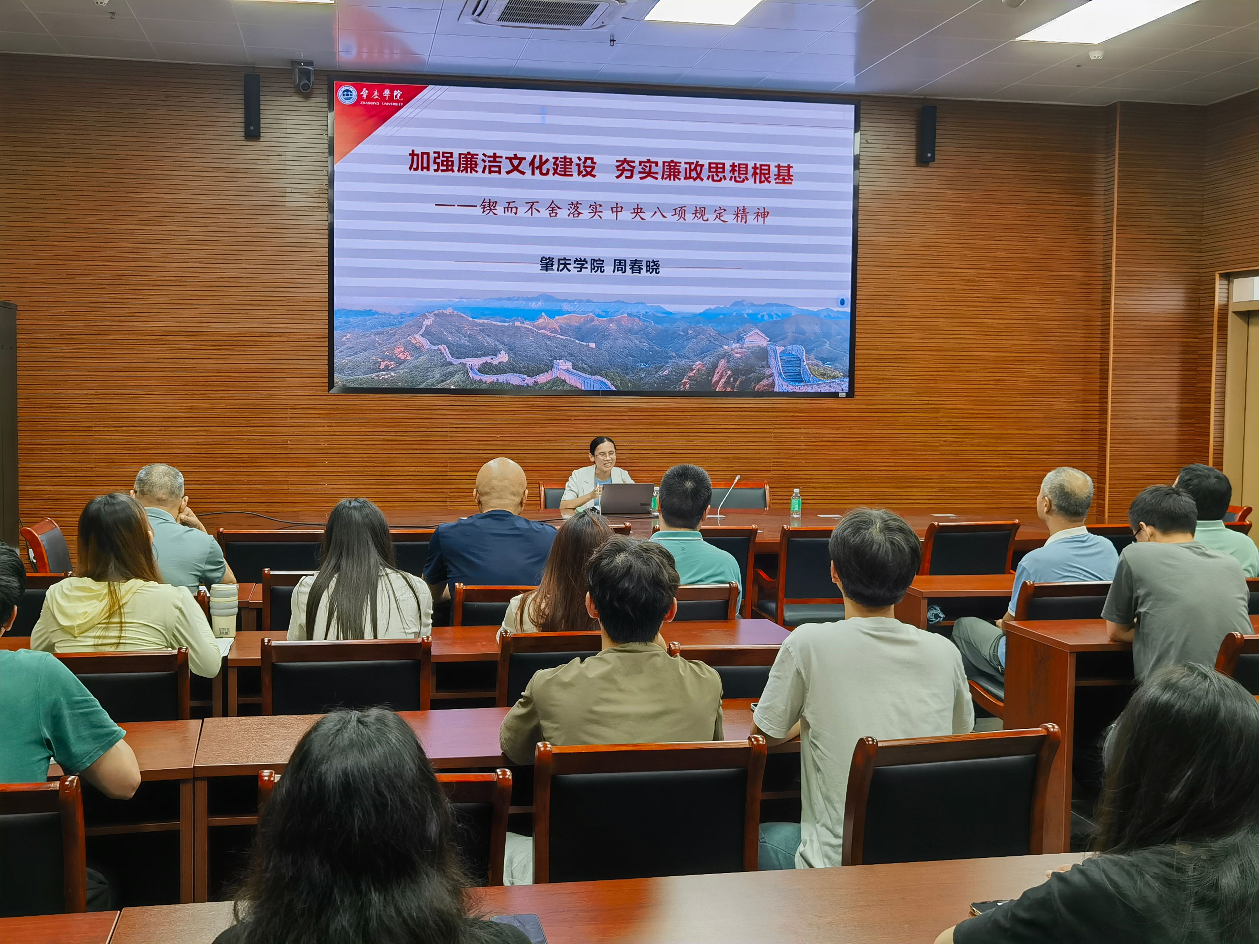 为进一步深入学习领会习近平总书记关于加强党的作风建设的重要论述,学习领会和贯彻落实中央八项规定及其实施细则精神,推进作风建设常态化长效化。6月18日下午,taptap点点体育,taptap点点官网入口党委邀请马克思主义学院副教授、学科教学(思政)专业硕士生导师,肇庆市高层次人才周春晓博士开展“加强廉洁文化建设 夯实廉政思想根基”专题宣讲会,学院师生党员代表50余人参会。