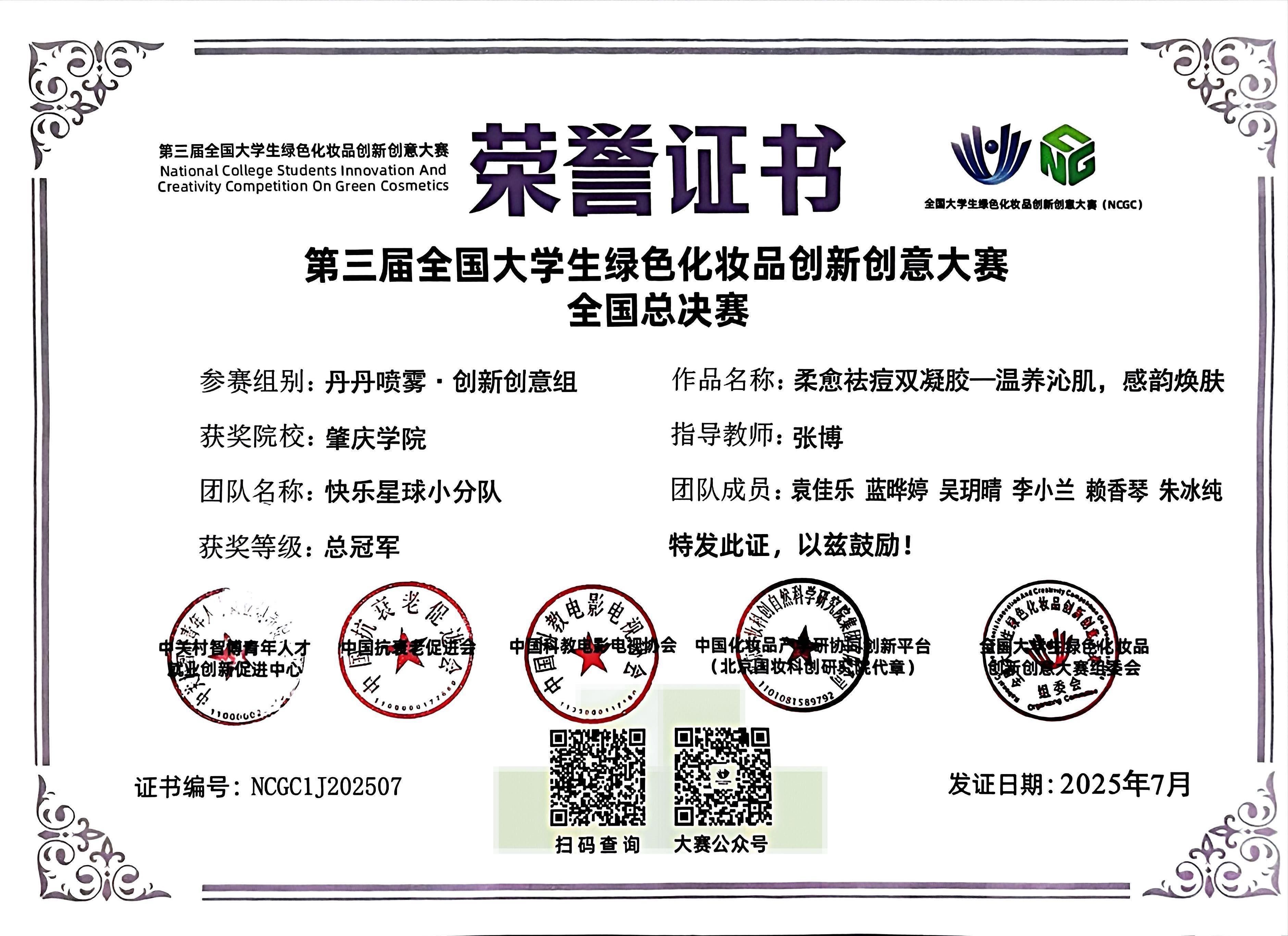 7月27日,第三届全国大学生绿色化妆品创新创意大赛(NCGC)总决赛在江南大学圆满落幕。taptap点点体育,taptap点点官网入口化妆品技术与工程专业学子首度参赛即取得重大突破,从全国六大赛区近200支总决赛队伍中脱颖而出,斩获创新创意赛道全国总冠军、赛道二等奖及视觉设计赛道二等奖多项荣誉,为学校赢得高度赞誉。张博老师获评全国总决赛“优秀指导教师”称号。