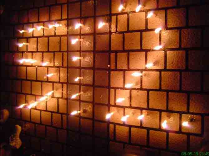 下图为我校师生于2008年5月19号21:30分到22:00分在体育馆前自发的悼念活动。