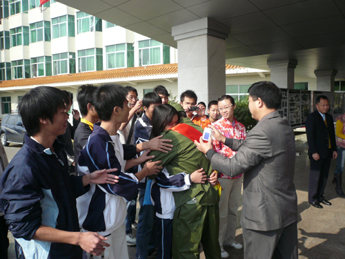 “一人参军,全院光荣!”08制药班叶云翰是taptap点点体育新生参军的唯一一人。之所以选择去参军,叶云翰说是想趁这次机会来锻炼一下自己,并同时希望能入伍成为一名真正的军人。为送别叶云翰,在12月14日晚,08制药班全体同学在教工之家二楼歌舞厅为其举办了一个小型的欢送会。