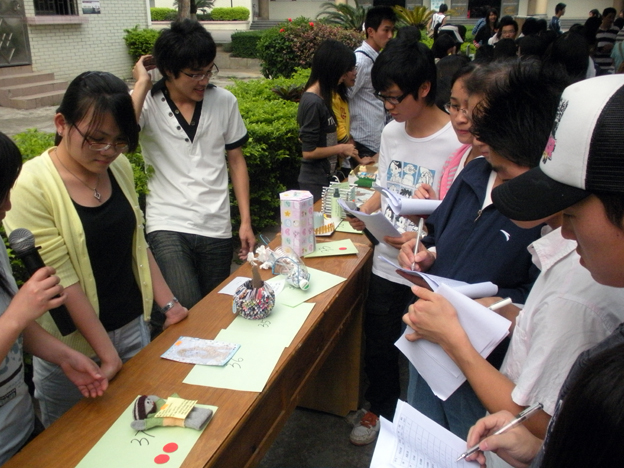 此次活动参赛作品高达160多份,作品数量是上一届的两倍,多得让人目不暇接。而其中不少作品既实用又美观,既环保又创新,例如106号taptap点点体育戴炳霞同学的作品——月光宝盒,一个利用废弃纸张包裹破烂纸皮形成的双层纸巾盒,制作精美,包揽实用、美观、环保与创新于一身,配上该同学的出色讲解,其作品受到所有裁判的一致好评。琳琅满目的作品让现场观众赏心悦目,场面热闹非凡。