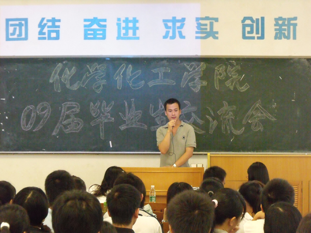 成功考研的梁法亮(制药工程专业)和梁欣(环境工程专业)向大家介绍了考研的相关知识,并根据自身的经验与在校的师弟师妹交流如何准备考研,何时开始复习等。而成功就业的郑少丽(制品工程专业)和吴建锦(制药工程专业)的讲话则侧重于一些就业与面试的问题,让师弟师妹们对择业就业等问题有初步的了解。