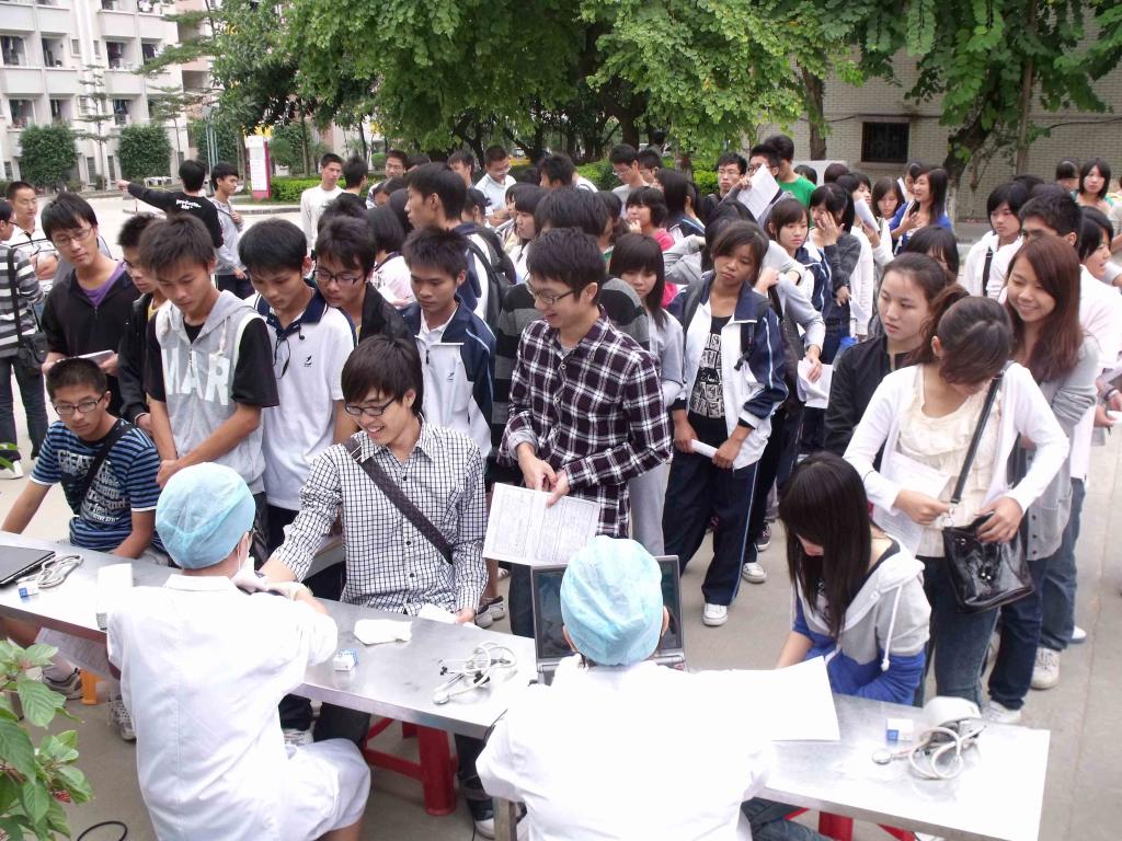 活动刚开始,同学们就已拿着填好的全血献血登记表,整齐地排着队进行献血前的各项检查。测体重、量血压、验血等各项健康检查过后,同学们面带微笑、勇敢坚定地走上了停靠在旁边的献血车,无偿献出自己的血液,奉献爱心,汲他人所需。