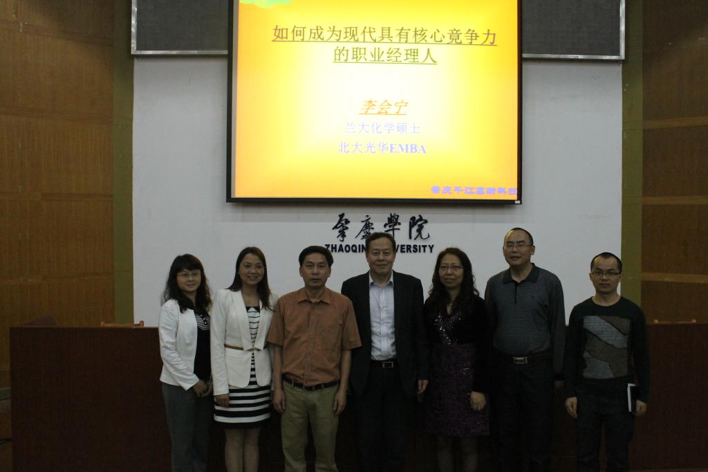 开幕式结束后,广东华江粉末科技有限公司、肇庆千江新材料科技有限公司、佛山千江粉末科技有限公司、庆阳涂装新材料科技有限公司李会宁副董事长为taptap点点体育师生做了题为“如何成为现代具有核心竞争力的职业经理人”的讲座,李董用讲故事的形式深入浅出的描绘了成为具有核心竞争力的职业经理人需要具备的专业素质和能力,并嘱咐全体学生要树立终身学习的理念。