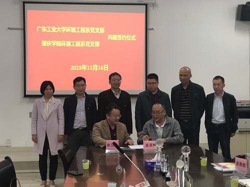 李书记对广东工业大学环境科学与工程学院党委一行的到来表示热烈欢迎,同时指出希望双方能够进一步更深入的交流合作。会上,广东工业大学环境科学与工程学院党委杨书记就该学院的党建做法进行交流,杨书记指出高校育人,党建为魂,应将党建融入教师队伍建设和学生素养中,党建业务全面发展。该学院谢武明副院长也就该学院学科建设及研究生情况进行介绍。随后双方环境与化学工程系教师党支部签署党建共建协议。在交流研讨会中,学院之间相互学习,建立了友谊。
