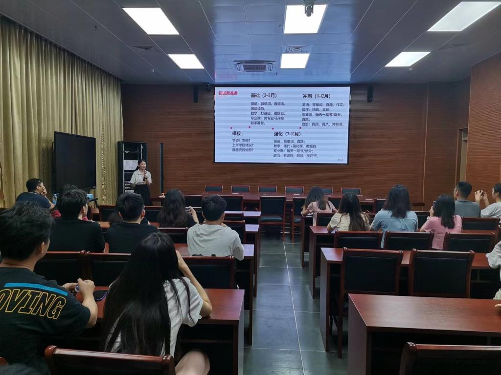 随后,三位主讲同学为分别就如何择校选专业、如何准备研究生各阶段考试、如何安排学习时间等方面为师弟师妹们传授大量的备考经验,并一一解答了同学们提出的备考过程中的时间分配、导师选择等学生关切问题,鼓励师弟师妹们在本科阶段要夯实专业基础,积极参加创新性实验实践活动,努力提高个人综合素质,同时还祝愿学弟学妹们在未来的备考路上能够坚定信念,不惧风浪,勇往直前。