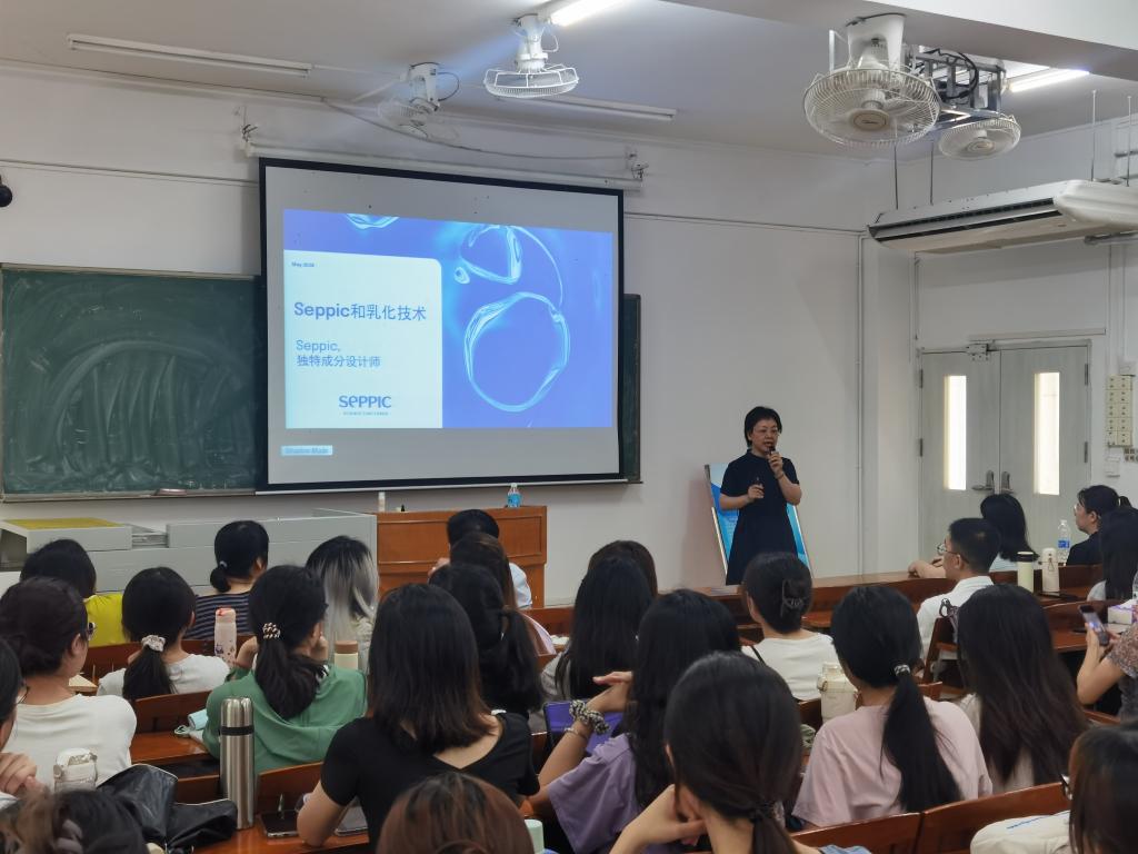 5月31日,全球知名化妆品原料公司——法国SEPPIC公司为我校化妆品专业的学子们带来了一场内容丰富、精彩纷呈的学术讲座。SEPPIC公司作为法国液空集团旗下的健康事业部,专注于为全球个人护理行业提供创新、安全、有效的原料,其卓越的产品在健康和美容护理领域享有极高的声誉。